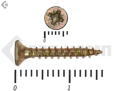 - Pz («Позидрив») – у желтых и белых универсальных саморезов. Размер шлица (№1, №2 или №3) зависит от диаметра головки. Чем больше размер крепежа – тем больше шлиц под крестовую отвертку или биту-насадку для шуруповерта;
